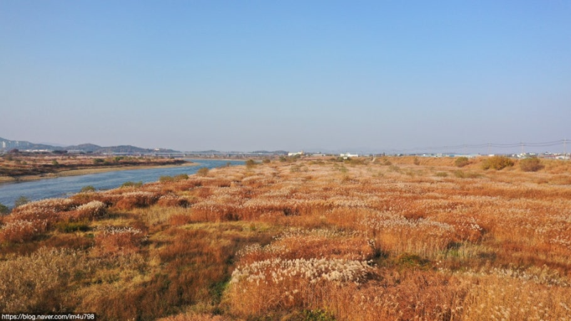 가을에는 억새가 하늘로 솟아올라 은빛 물결을 만들고, 겨울이면 물새들이 강 위를 덮습니다.