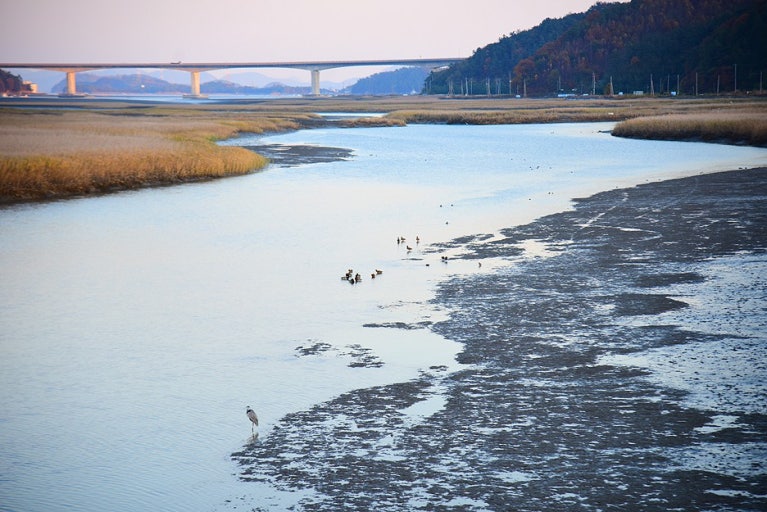 전라남도 보성군 벌교읍에는 한 폭의 풍경화처럼 고요히 누워 있는 중도방죽이 있습니다.