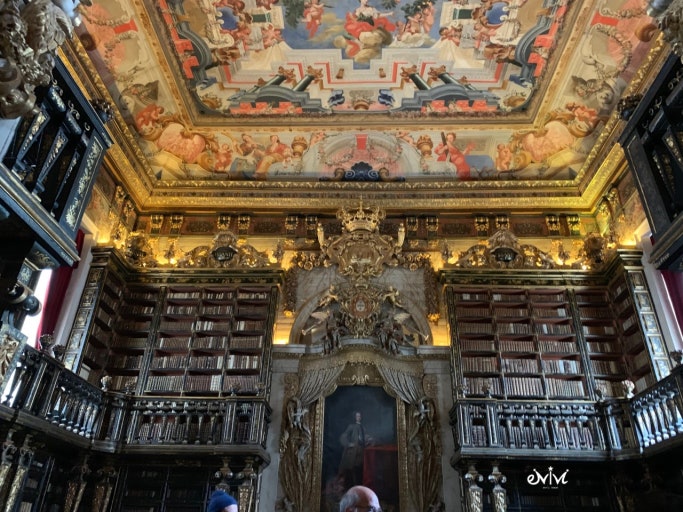 첫 번째는 '포르투갈의 자존심'이라 불리는 **조아니나 도서관(Biblioteca Joanina)**입니다. 온통 황금으로 장식된 화려한 바로크 양식 덕분에, 들어서는 순간 왕궁에 온 듯한 착각이 들죠. 영화 <미녀와 야수>의 배경이 된 곳이라는 소문이 있을 정도로 아름답습니다.